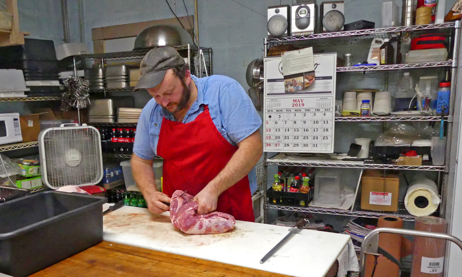 hog." His recipe. "It's chopped pork, not ground. I mix mine