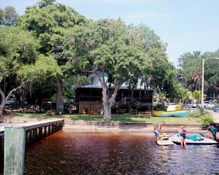 The Crescent City/ Putnam County area also raises more ferns than anywhere else in the county. The giant oaks that shelter the tender greenery offer a pictureques setting for picnics under their boughs. The same oaks wrought much devastation when Francis and Jeanne toppled many of the ancient trees. In this picture, some jetskiers prepare to sample some of the lakefront hospitality of Three Banana's, a popular dining spot in Crescent City.