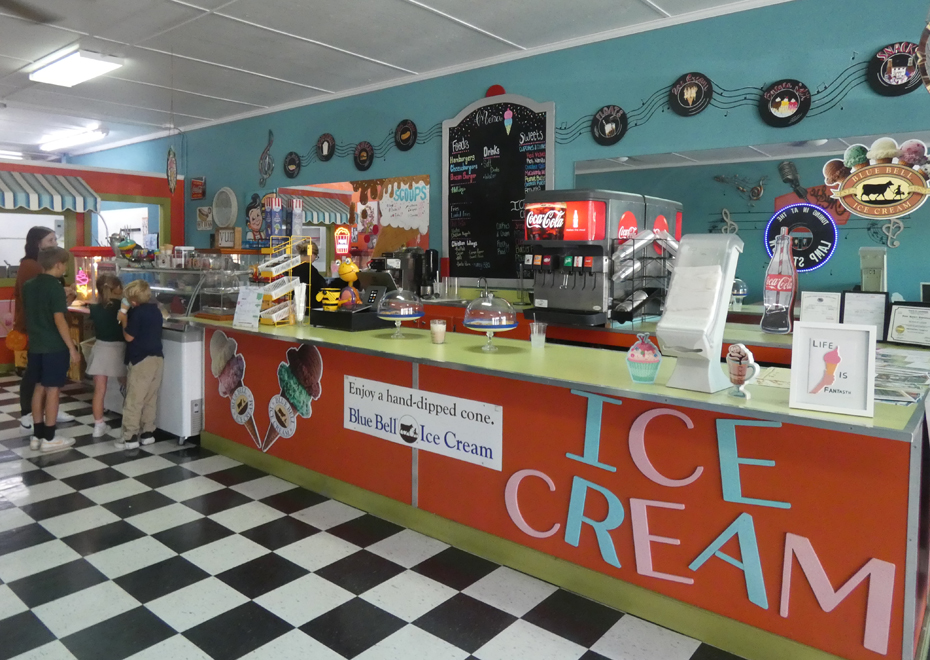 1950s-style ice cream parlor serving ice cream and some