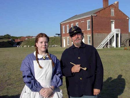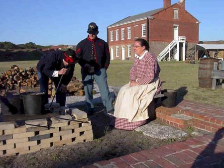 The first weekend every month, re-enactors don Union uniforms and ladies wear hoop skirts to participate in living history exhibits. April 3 and 4 hosted one of the larger events through the year, with re-enactors traveling from as far away as Maryland to participate. They offered demonstrations in Civil War era medicine, crafts and military justice during the day on Saturday. That night guides gave a candlelight tour of the fort, and on Sunday morning the chaplain of the 54th Massachusetts infantry preached for the crowd