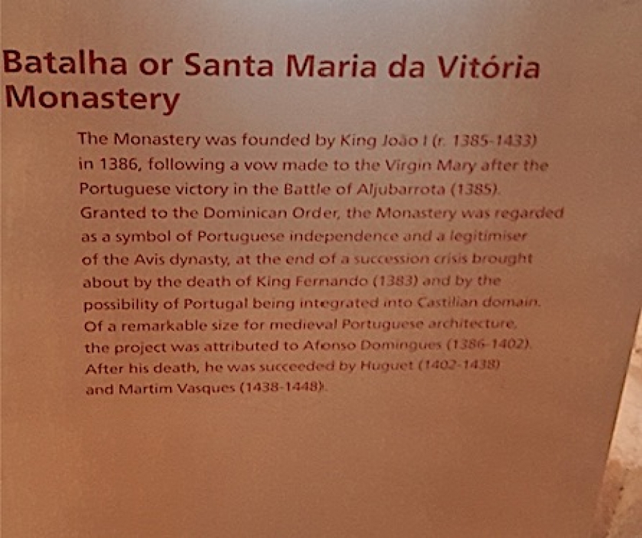 Prince Henry the Navigator’s tomb is in the 1388 UNESCO World Heritage Site, the Dominican abbey of Santa Maria da Vitória, in Batalha.  The tombs of King João and his wife reside in the Chapel of Founders and there is a superb 1514 stained-glass window behind the choir. Architecturally and historically this is an important and impressive edifice.
