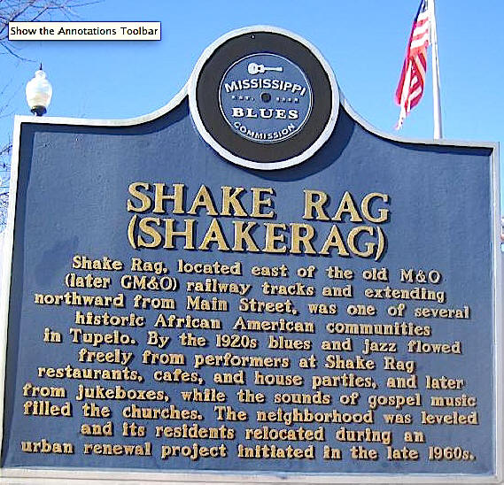 For a time the Presley's lived in the Shake Rag Black Community north of Main Street. Music filled the enclave and Elvis was, no doubt, influenced. So many important musicians were in the area that it is a site on the MS Blues Trail.