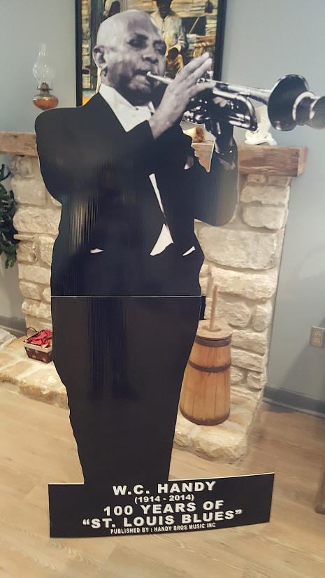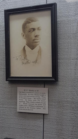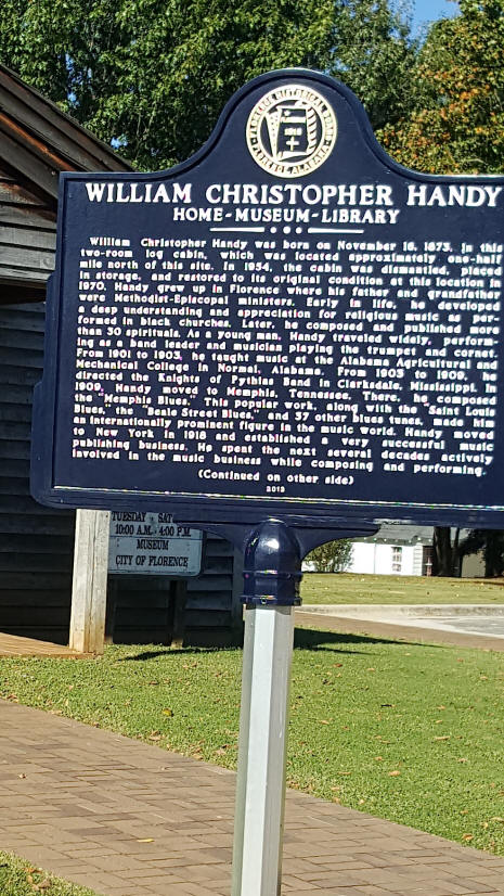 W.C. Handy, "The Father of the Blues", was born in Florence in 1873 in a one-room cabin. He was not the first to play the blues but he was the first to write down and publish this "new" form of music that blended religious and secular styles with worldly themes. His works, Beale Street, St. Louis and Memphis Blues influenced other musicians and popularized the genre. Both his father and grandfather were ministers and his family was not pleased with his career choice.