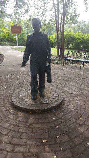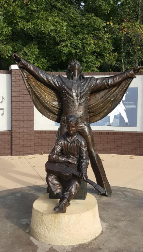 An overlook was recently created with benches, interpretive information and a sculpture of a milk-crate seated 11-year old Elvis in front of a standing, caped Elvis at the height of his worldwide popularity. "Becoming" was unveiled in 2015 on a site where Elvis played as a child.