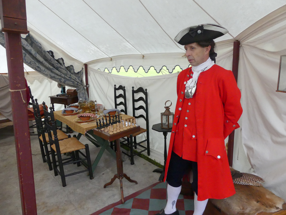 Fort Ligonier in the Laurel Highlands of Western Pennsylvania retells that period of history in their museum and reconstructed fort. The fort is reconstructed on the same ground as the original and shows what a frontier fort would have looked like during the French and Indian War. Reconstructions of the officer’s mess, hospital, barracks, and General Forbes’ headquarters are all furnished as they would have been in 1758. There was a reenactor portraying an officer in his very fancy tent. He explained that he had been allotted two wagons to haul his supplies to make his frontier sojourn comfortable. Even his china had been provided; a far cry from the crowded enlisted men's tent.