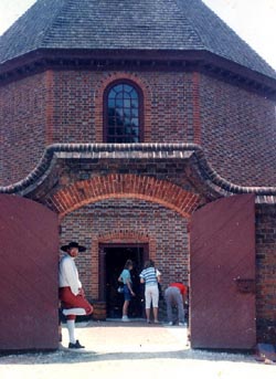 A sentry relaxes as visitors "invade" Williamsburg. Photo credit Martin Walls |