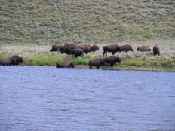 Bison crossing the Yellowstone River