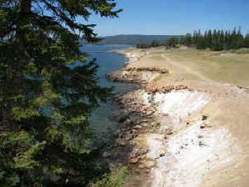 The glaciation 15,000 years ago created an ice dam that backed up a lake north of Fishing Bridge and left the meadow called Hayden Valley, a favorite wild life watching area. Each time we go back we not only admire the wide, flat valley between the pine covered hills, but we enjoy the memories of wildlife we have seen here in the previous visits we've made. There was an elk herd far across the valley; a little pack of wolves playing and stalking through the brush; the herd of bison that forded the river and shook like wet dogs on the far side; the fluffy-tailed coyote stalking a family of sleek otters who were sliding and rolling in the shallows---and who tantalized the coyote then splashed her until she lost interest. There was a fat, brown beaver sliding through the shallows to the clump of branches marking the beaver lodge on the side of the river.
